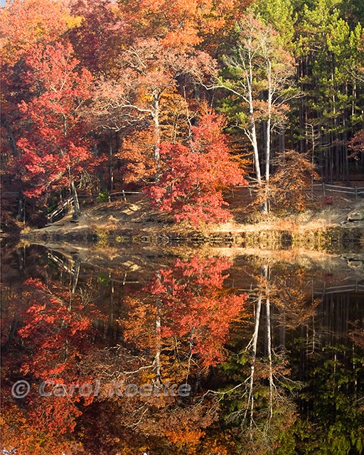 Still water on a fall morning can produce scenes of stunning beauty. This photograph was taken at Brown County State Park in Indiana on just such a morning. This photograph is printed on archival Museo Silver Rag photo paper using Epson Ultrachrome K3 pigment based inks and complemented with a soft-white mat. An optional black aluminum frame by Nielsen completes a piece of art that's ready to hang. The photograph is available in two sizes: 8"x10" matted to 11"x14" and 11"X14" matted to 16"x20". Carol Koetke Photography |