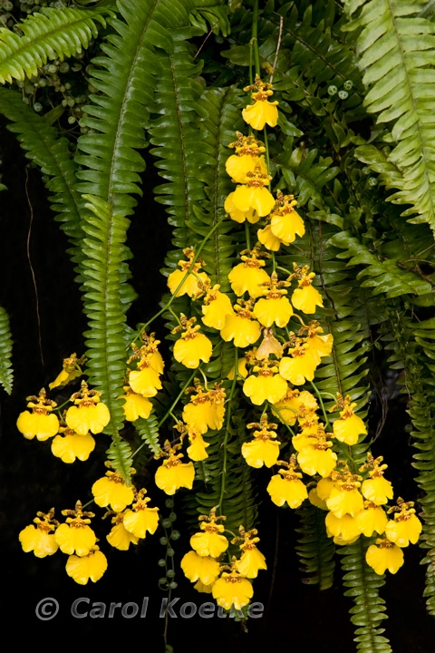 The intensely yellow, delicate flowers of this much-awarded orchid dance in a breeze like a troupe of ballerinas. There can be 100 or more simultaneous blooms on lacy, branching stems, 4 to 5 feet long. This photograph is printed on Museo Silver Rag photo paper using Ultrachrome pigment based inks and complemented with a soft-white mat. An optional black aluminum frame by Nielsen completes a piece of art that's ready to hang. This photograph is available in only one size: 8"x12" matted to 12"x16". Carol Koetke Photography |
