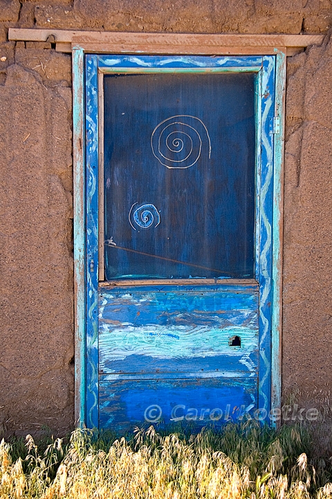 The doors at the Taos Pueblo give a unique character to the entrance of a living space. Although the Pueblo itself was probably built in the 1400s (some historians believe in the 500s), doors and windows were not used until the Spanish introduced them in the 1700s to replace roof openings. The photograph is printed on Museo Silver Rag photo paper using Ultrachrome pigment based inks and complemented with a soft-white mat. An optional black aluminum frame by Nielsen completes a piece of art that's ready to hang. This photograph is available in only one size: 8"x12" matted to 12"x16". Carol Koetke Photography |