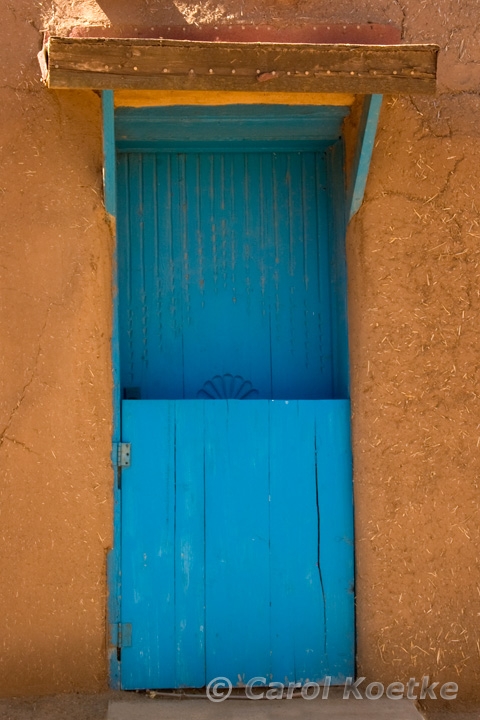 The doors at the Taos Pueblo give a unique character to the entrance of a living space. Although the Pueblo itself was probably built in the 1400s (some historians believe in the 500s), doors and windows were not used until the Spanish introduced them in the 1700s to replace roof openings. The photograph is printed on Museo Silver Rag photo paper using Ultrachrome pigment based inks and complemented with a soft-white mat. An optional black aluminum frame by Nielsen completes a piece of art that's ready to hang. This photograph is available in only one size: 8"x12" matted to 12"x16". Carol Koetke Photography |