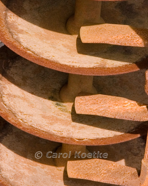 This disk harrow was photographed in a farm equipment junk yard in Gnawbone, Indiana. Can you imagine how many acres these disks turned over before being allowed to retire? The disks provide indisputable evidence that there is strength and beauty in retirement. This photograph is printed on archival Museo Silver Rag paper using Epson Ultrachrome pigment based inks and complemented with a soft-white mat. An optional black aluminum frame by Nielsen completes a piece of art that's ready to hang. This photograph is available in two sizes: 8"x10" matted to 11"x14" and 11"x14" matted to 16"x20". Carol Koetke Photography |