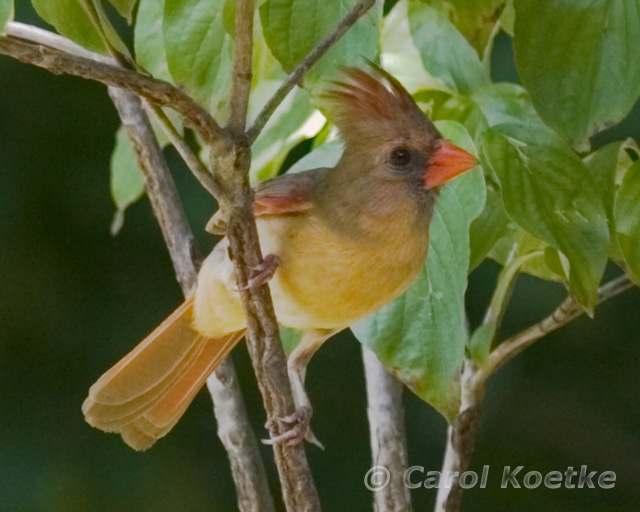 A female northern cardinal catches some shade in a dogwood tree. This photograph is printed on archival Museo Silver Rag photo paper using Epson Ultrachrome pigment based inks and complemented with a soft-white mat. An optional black aluminum frame by Nielsen completes a piece of art that's ready to hang. This photograph is available in only one size: 8"x10" matted to 11"x14". Carol Koetke Photography |